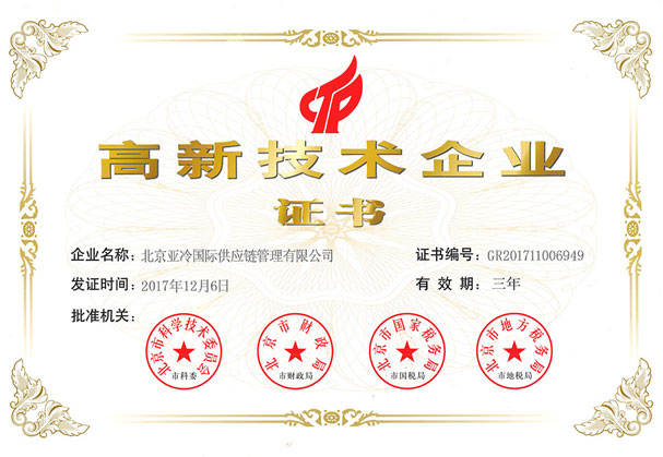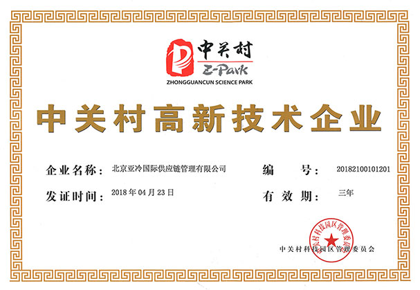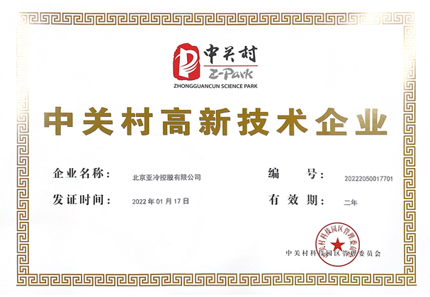亞冷中關村 高新技術企業