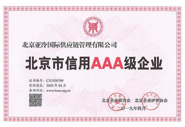 北京市信用AAA級企業