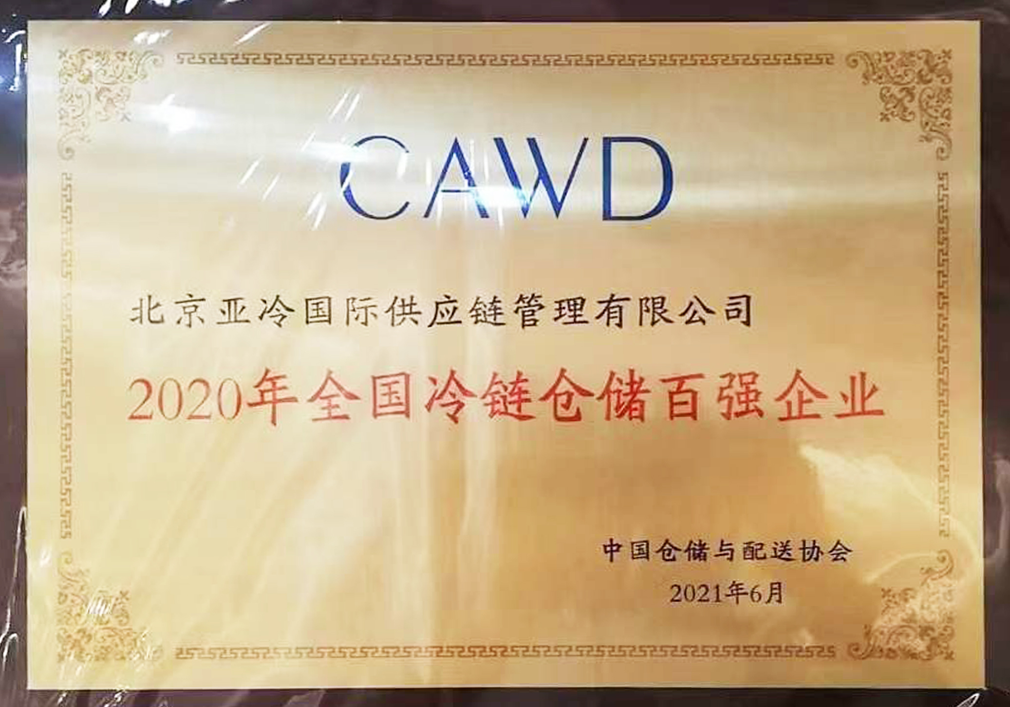 會議同期,頒發2020年全國冷鏈倉儲百強企業亞冷再次上榜,并名列前三。