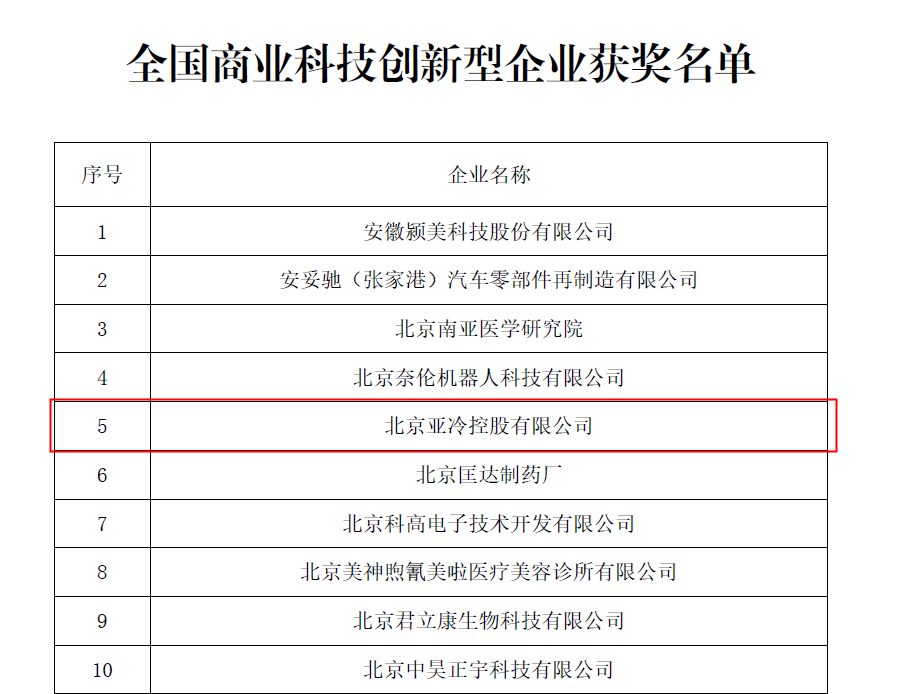 獲獎(jiǎng)!亞冷榮獲“2021年全國(guó)商業(yè)科技創(chuàng)新型企業(yè)”
